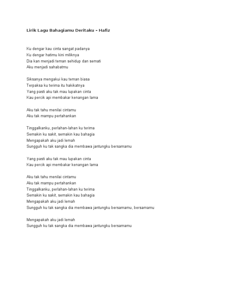 Lirik Lagu Bahagiamu Deritaku Hafiz Pdf
